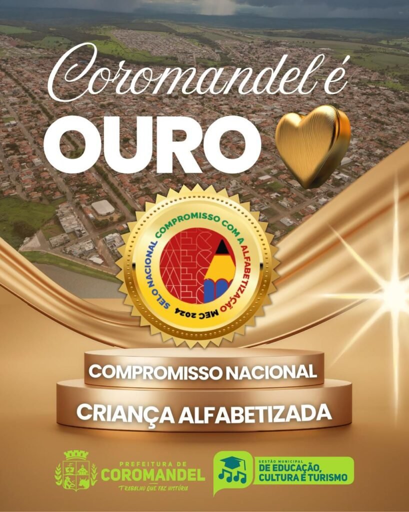 Coromandel conquistou o Nível Ouro no Selo Nacional Compromisso com a Alfabetização (CNCA), a certificação máxima concedida pelo Ministério da Educação. O reconhecimento confirma que a Rede Municipal de Ensino atingiu altos padrões de qualidade na alfabetização das crianças na idade certa.